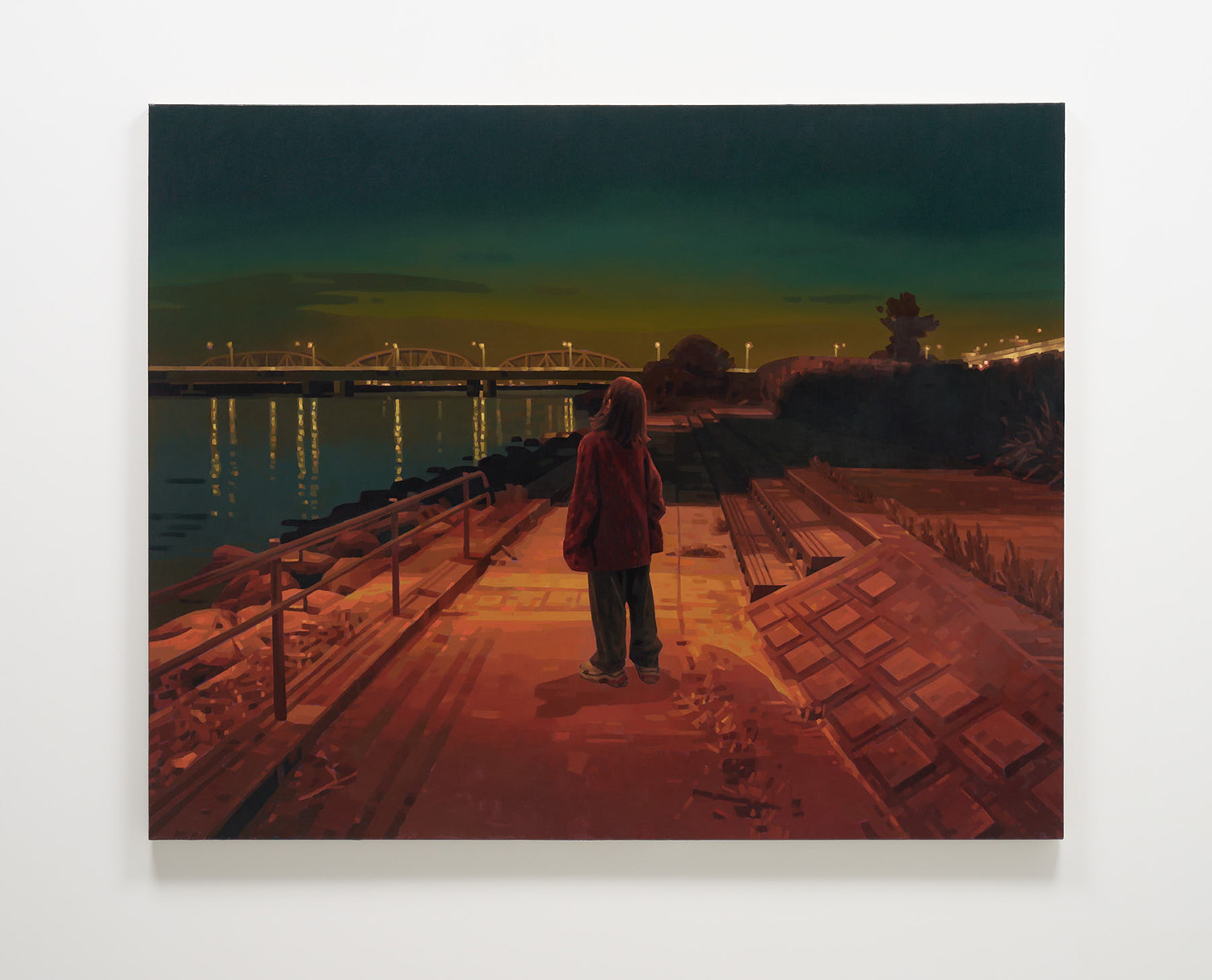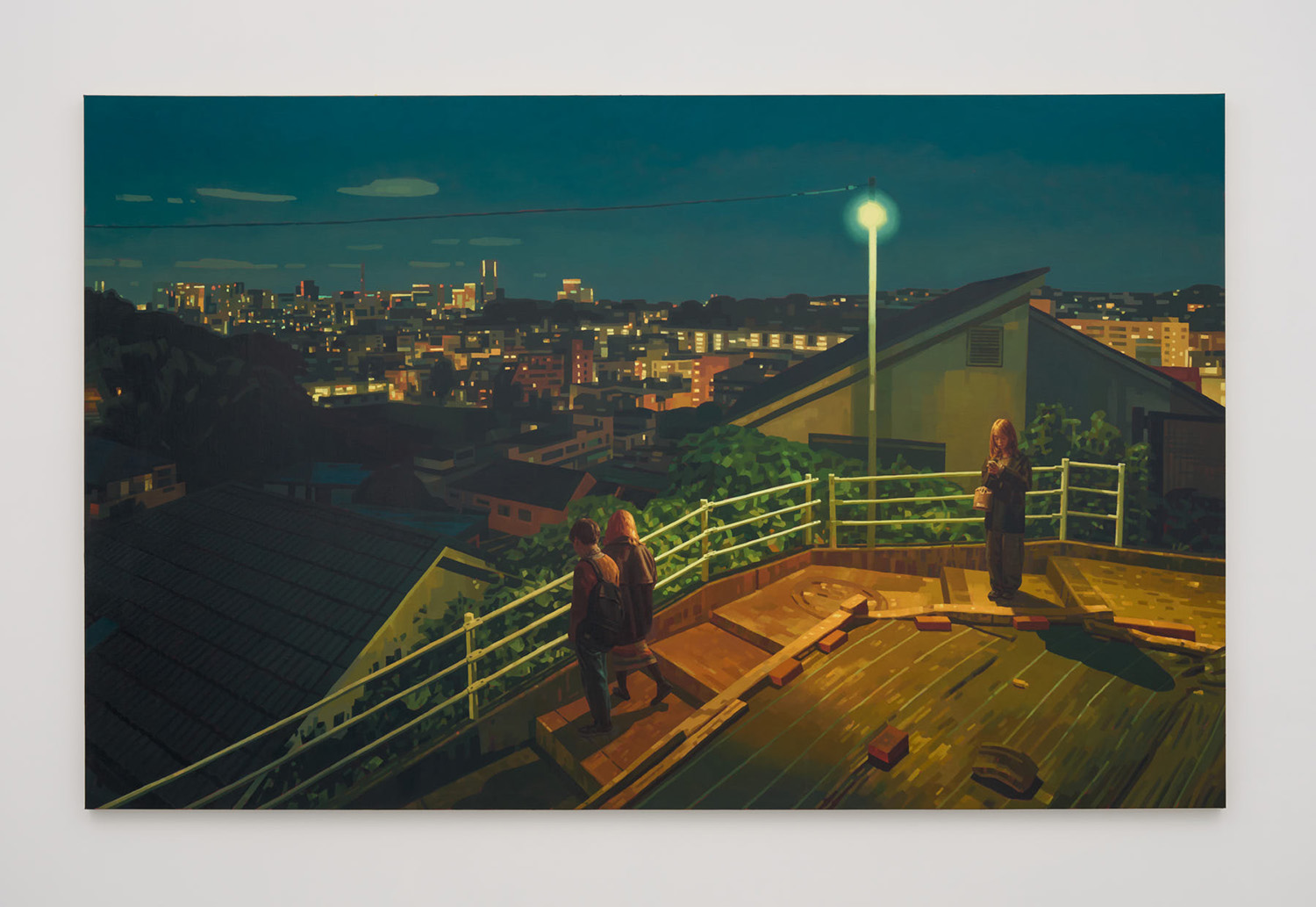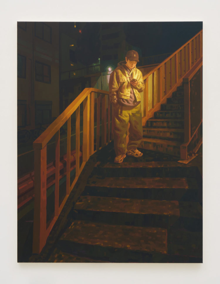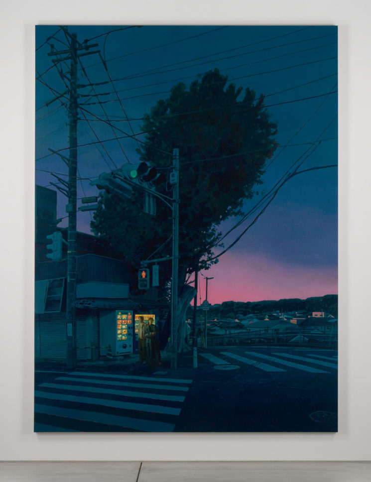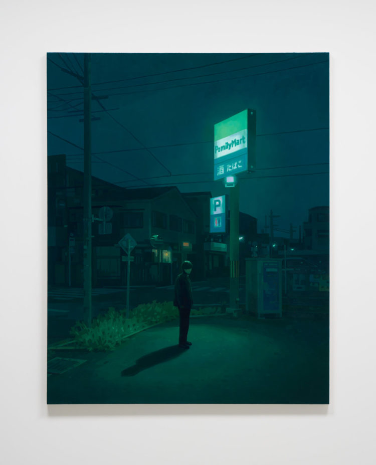 大阪出身の森本啓太は、高校卒業後に単身カナダへと渡り、約15年という長い歳月をトロントで過ごした後、2021年に日本へと帰国。以降、東京を拠点に創作活動を続けている。レンブラントやフェルメールに代表されるバロック絵画や、エドワード・ホッパーなどのアメリカンリアリズムに見られる視覚言語を参照して制作されるその作品は、街灯やネオンサイン、自動販売機といった人工灯を強い明暗法で描き出し、光と影の対比を通して現代都市のありふれた風景に潜む一瞬のストーリー性を静かに浮かび上がらすものである。