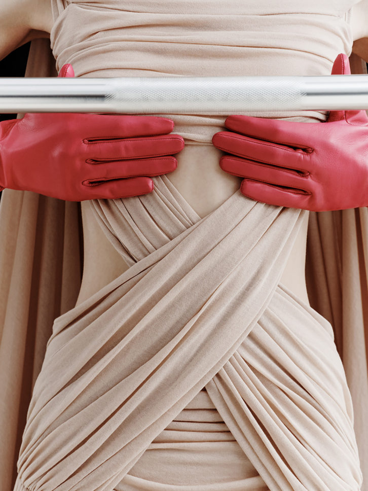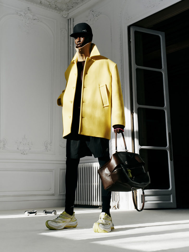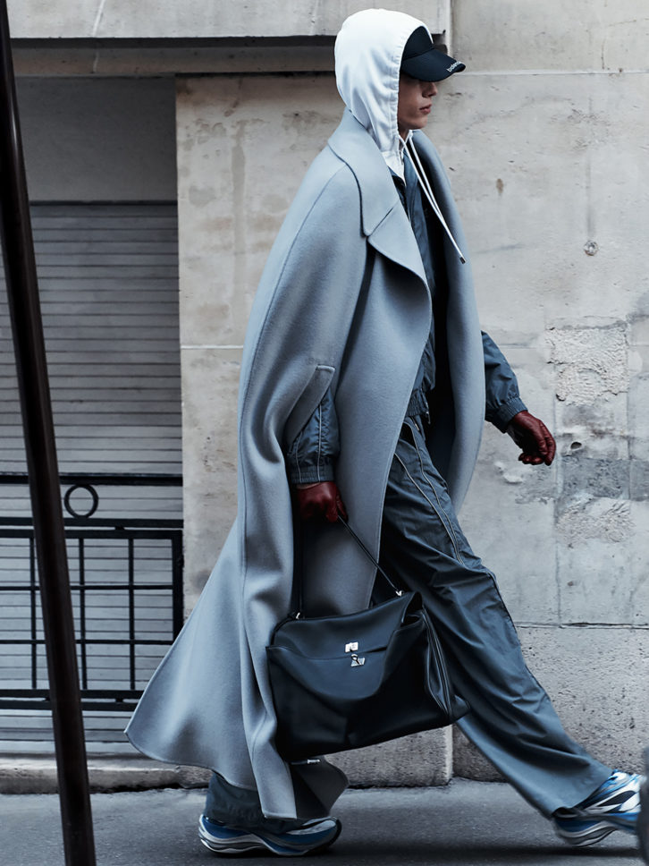 軽やかさ、弾力性、そして身体への本質的な意識。ピッチョーリがFall 26 コレクションで探求したのは、創業者であるクリストバル・バレンシアガの手法の本質。それは、人間性と人の手に与えられた最重要性に深く結びついたアプローチであり、人間のフォルムを想像的対話の中心に据えるものであるという。21世紀においてこのアプローチは、スポーツとテクノロジーの融合を意味し、ここではそのイデオロギーが、ストリートフォーマルやテックウェア、スポーツサルトリアル、テクノボールガウンなど、ウィメンズウェアとメンズウェアのために、幅広い衣服に落とし込まれている。