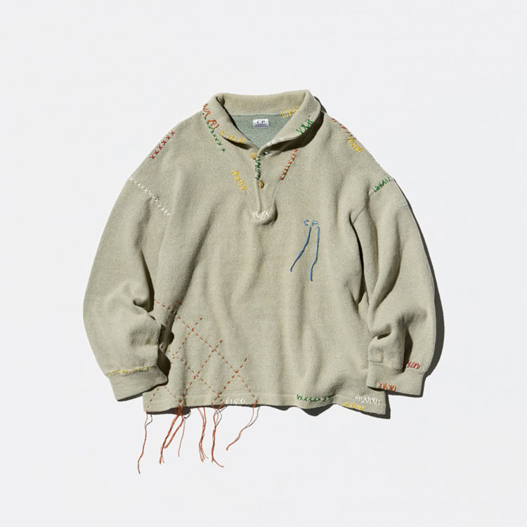 昨年春に即完売したという第1弾に続く今作は、1980年代から2010年代に生産された「シーピーカンパニー」の歴史的なアーカイヴピースをキャンバスに、「サシコギャルズ」の職人たちが手作業で丁寧に“刺し子”を施した1点もの。「シーピーカンパニー」のシグネチャーとなるミリタリーウェアからインスパイアされたアウターやニットが、“刺し子”の技法でリメイクされている。