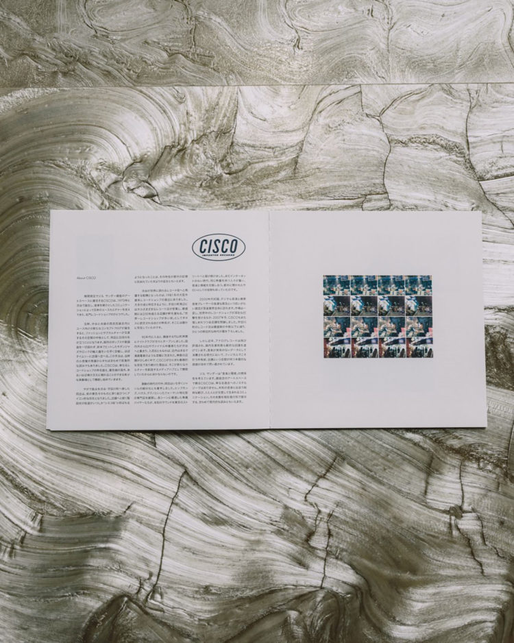 同店のアートスペースでは、2007年末に惜しまれつつ閉店した伝説的なレコードショップ「CISCO(シスコ)」が、「ジル サンダー」とのパートナーシップにより新たな解釈とともに期間限定で復活し、「シスコ」へのオマージュとして、アイコニックな“CISCO ブルー”で彩られたキオスクや什器、特別なショッピングバッグなど、当時の内装を再解釈したエレメントが登場。同店で販売される一部のアナログレコードが視聴できる4つのリスニングステーションに加え、日本発の音響機器メーカーであるイースタンサウンドファクトリーによるBWVのサウンドシステムが設置され、緻密に設計された音響空間が圧倒的な没入空間を描き出している。
